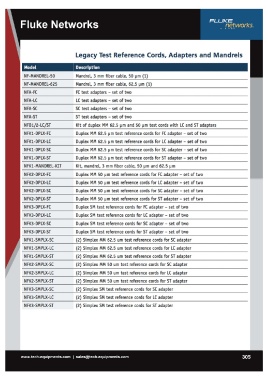 II' Legacy Test Reference Cords, Adapters and Mandrels