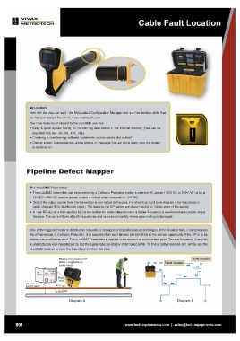 • A near DC signal is then applied by the transmitter for defect detection and a higher frequency is used simultaneously to locate