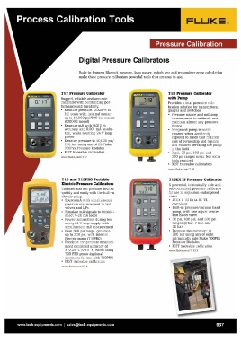 • Power transmitters during test • Built-in pressure/vacuum hand