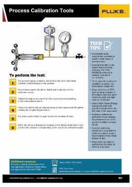To perform the test: • Deadweight tester